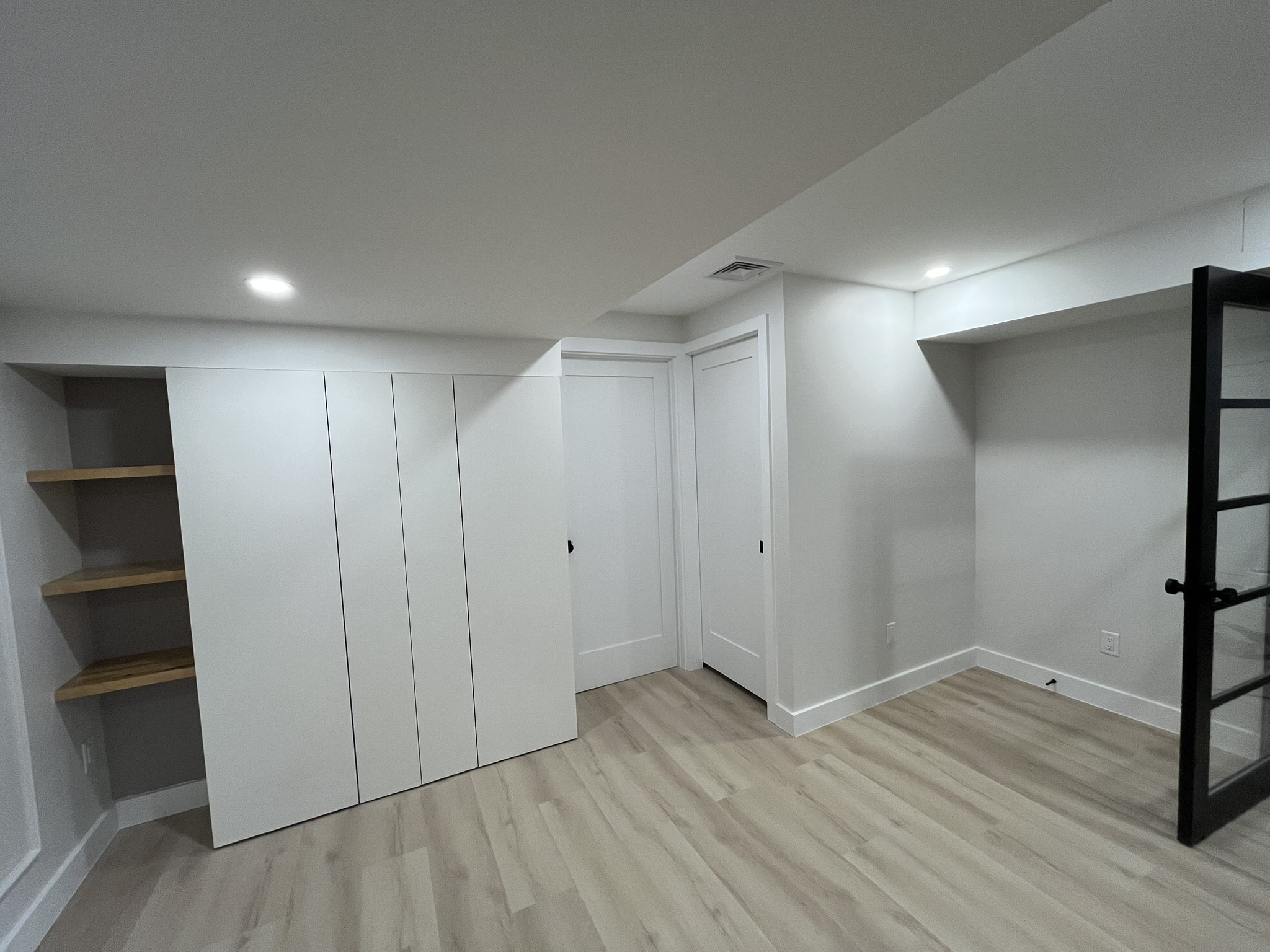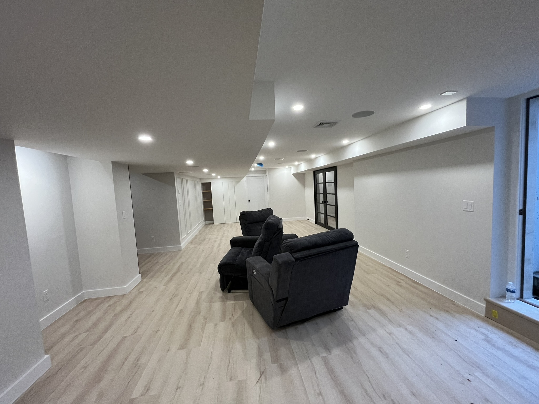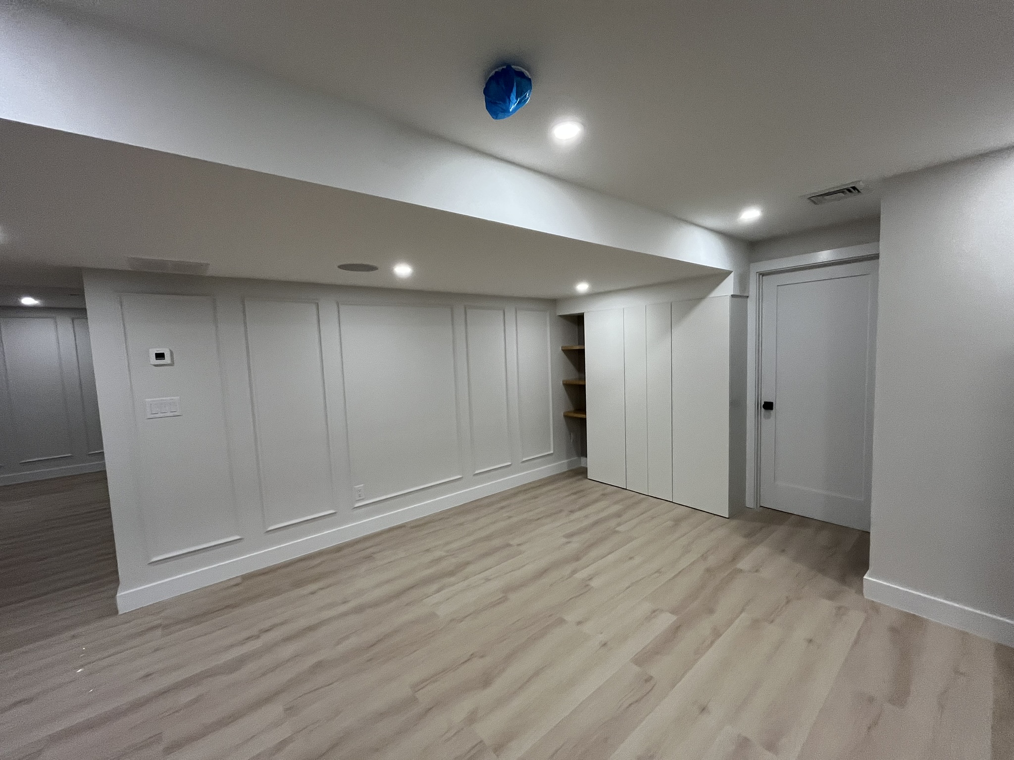 Sun Shore Construction transformed a basement in Boxborough, MA, into a bright, open, and highly functional living area. This project featured a newly framed stairway with railing, enclosed storage solutions, premium flooring, and modern finishes that enhance both comfort and style.