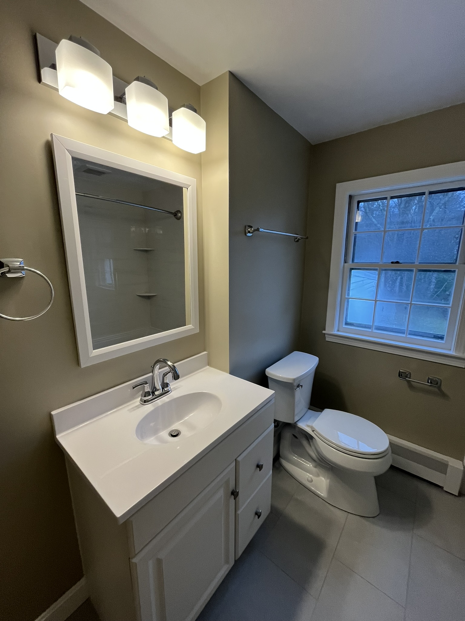 • Fixtures & Finishes: Installed a new vanity, mirror, lighting, toilet, baseboards, and bathroom hardware.