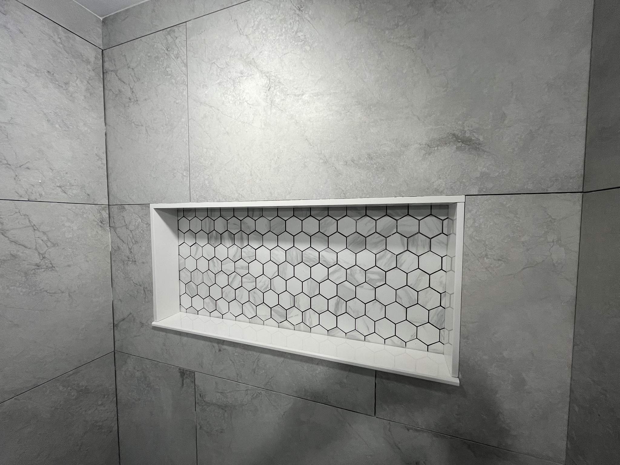 • Walk-In Shower: Installed a mud shower base, cement boards, and comprehensive waterproofing for durability.