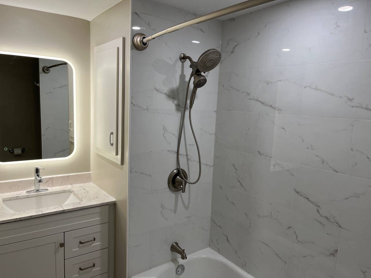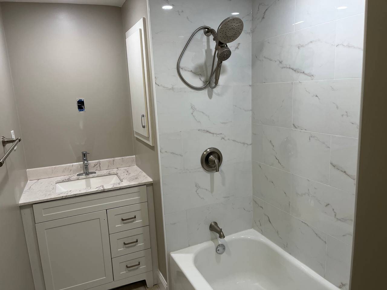 - Vanity and Storage: Installed a sleek vanity with ample storage space and modern faucets to maximize functionality.