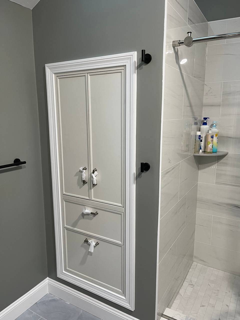 Sun Shore Construction proudly completed a luxurious bathroom renovation in Natick, MA. This project showcases our expertise in blending modern design with practical functionality. The outdated bathroom was revamped into a stunning space featuring a custom walk-in shower and elegant finishes.
