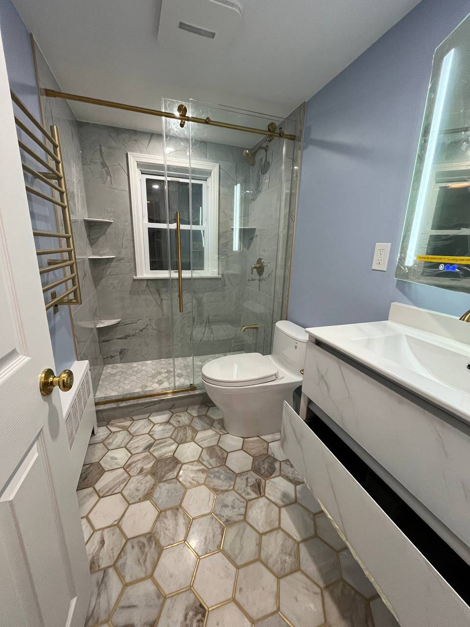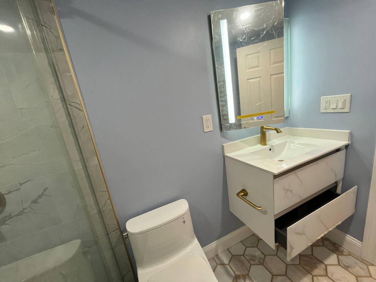 - Vanity Installation: Sleek and functional, paired with high-quality faucets and drainage systems.