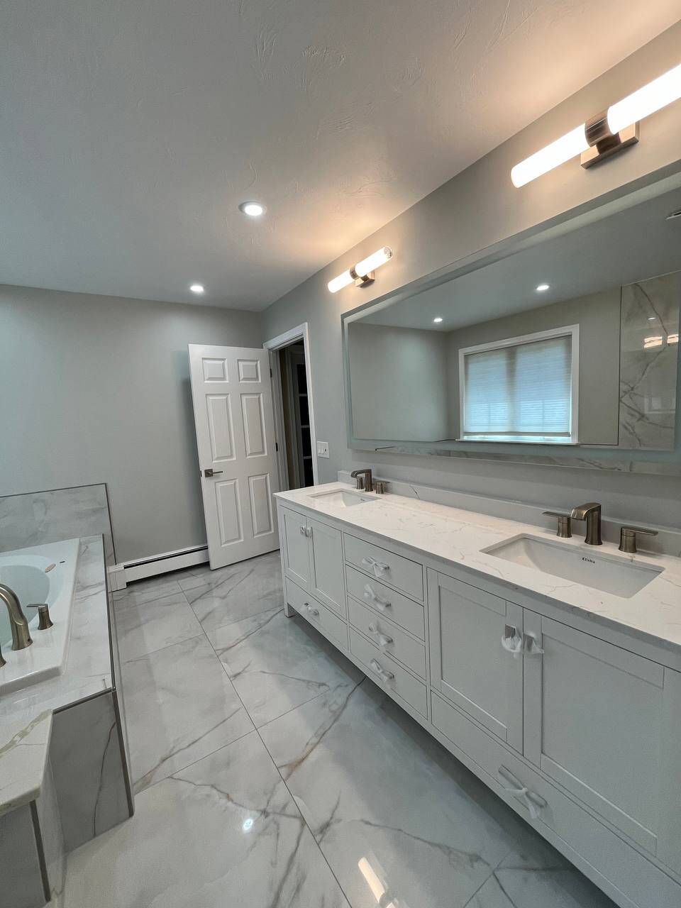 Sun Shore Construction recently completed a breathtaking bathroom transformation in Canton, MA. Our mission was to create a luxurious and functional space that met the client’s vision of modern comfort and timeless elegance. From removing outdated fixtures to installing a state-of-the-art vanity and shower, this project highlights our commitment to high-quality craftsmanship and innovative design.