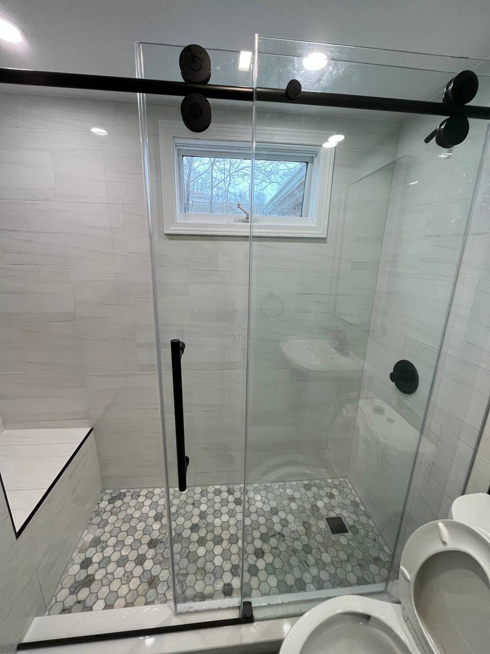• Custom Walk-In Shower: A state-of-the-art walk-in shower with meticulously waterproofed tiles, modern fixtures, and a sleek glass door.